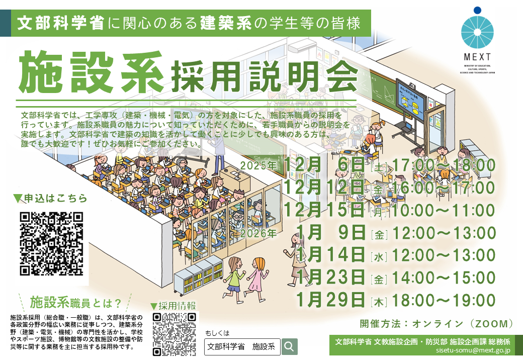 採用情報 施設系(総合職・一般職):文部科学省 (mext.go.jp)